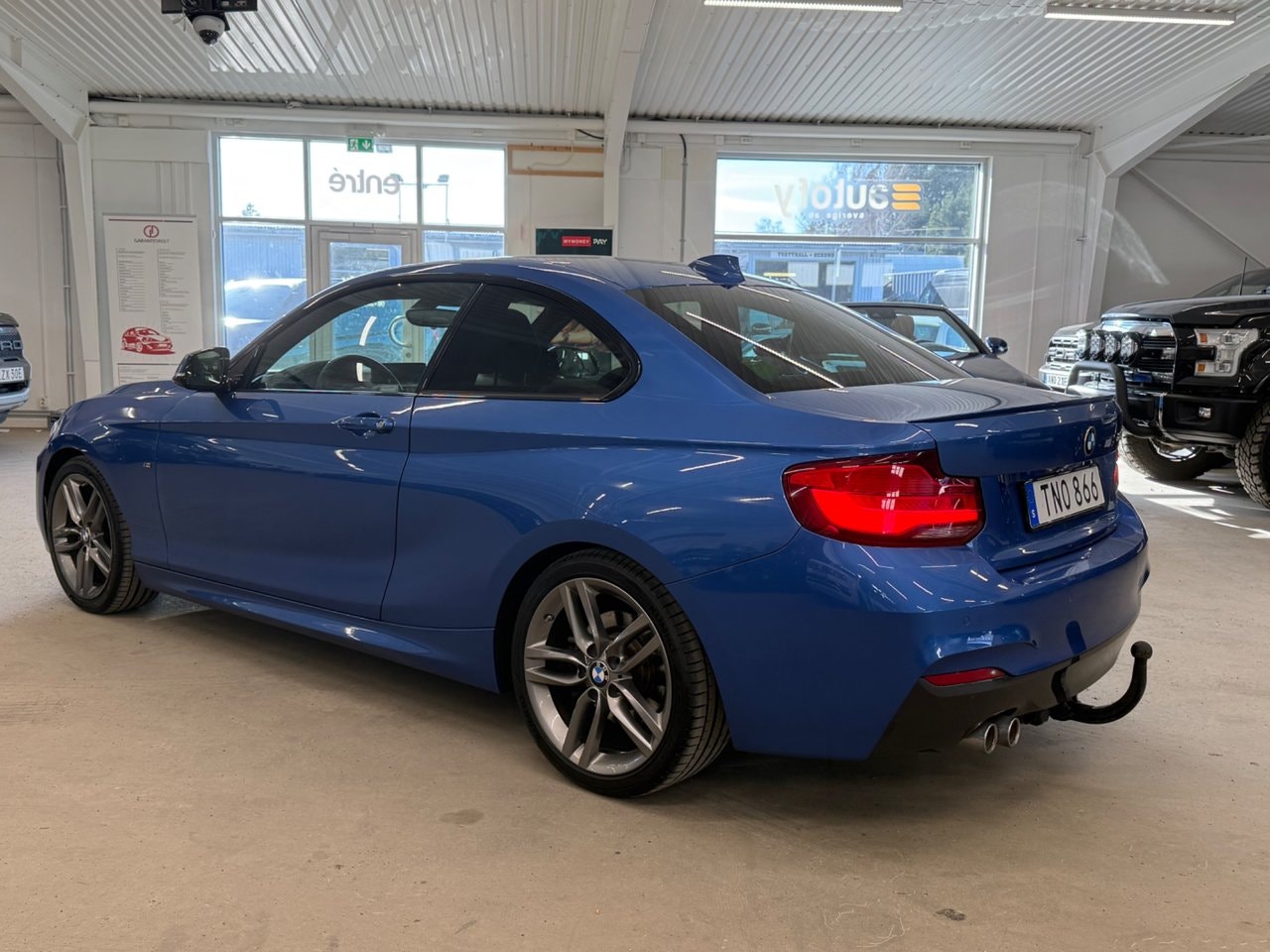 Nu har vi fått in denna riktigt fina och välutrustade BMW 220! Utvändigt möts vi av en snygg Estoril Blå färg utvändigt som gör sig galant med den mörka inredningen. I utrustningsväg så finner vi bland annat M-Sport paketet, Navigation System Pro, Taklucka, Harman/Kardon, Sportväxellåda med paddlar, Dragkrok, Träinredning, Digitalt mätarhus och mycket mer. Tidigare ägare har tagit väl hand om bilen och service är utfört vid följande miltal: 4- 2572 - 3435 - 4528 - 4600 - 6401 - 7189 och senast vid 8324 mil. Varmt välkomna in till oss för att förvärva denna fina BMW 2-Serie! Vi tar mer än gärna emot er befintliga bil i inbyte!OBS! Vi visar bilar efter tidsbokning och detta för att göra din visning så personlig som möjligt. Administrationsavgift tillkommer på samtliga bilar.För mer information, ring 08-388 527 eller mejla info @ autofy.se