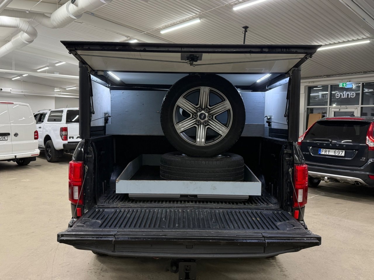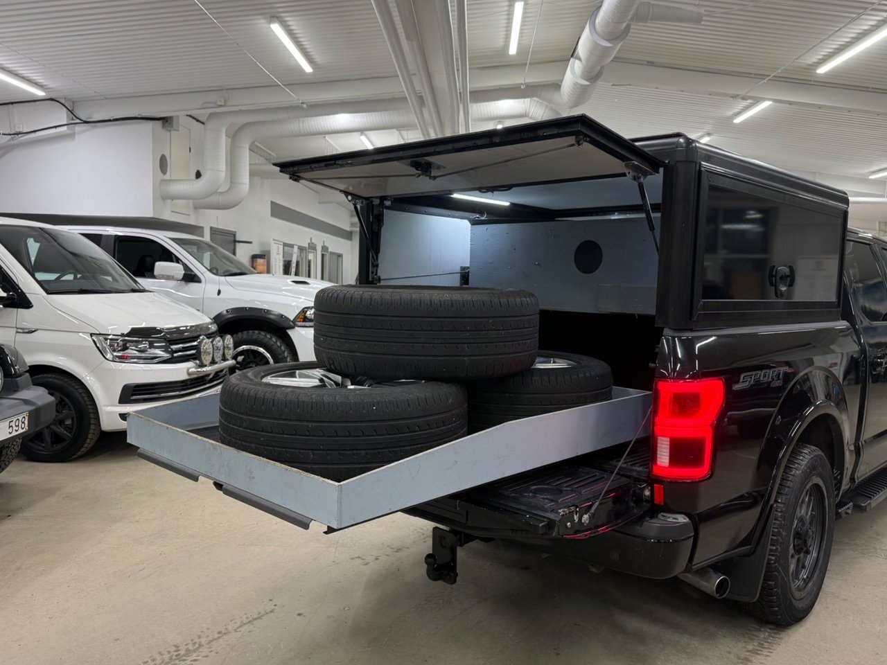 Nu har vi fått in denna riktigt balla Ford F-150 Lariat Sport! Bilen kommer i ett Black on Black utförande med en svart färg utvändigt, Svart skinnklädsel invändigt, Tonade rutor och givetvis svarta fälgar! I utrustningsväg så finner vi bland annat Lariat Sport paketet, Bang & Olufsen Ljudsystem, Specialbyggd flakkåpa av Hoffmans Karosseri, Lastsläde, Keyless, Navigator, Panoramaglastak och mycket mer. Tidigare ägare har tagit väl hand om bilen och service är utfört vid följande miltal: 804 - 1697 - 2975 - 5786 - 7286 - 8824 - 10.696 - 12.169 - 14.080 - 15.333 och senast vid 17.128 mil. Besiktigad t.o.m. 2026-07-31. Momsen är avdragsbar för företagare! Varmt välkomna in till oss för att förvärva denna fina Ford F-150 Lariat Sport! Vi tar mer än gärna emot er befintliga bil i inbyte! OBS! Vi visar bilar efter tidsbokning och detta för att göra din visning så personlig som möjligt. Administrationsavgift tillkommer på samtliga bilar.För mer information, ring 08-388 527 eller mejla info @ autofy.se