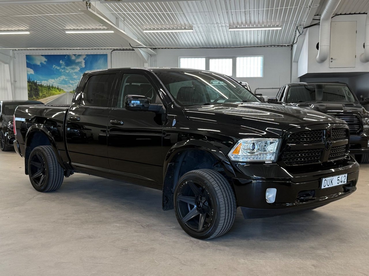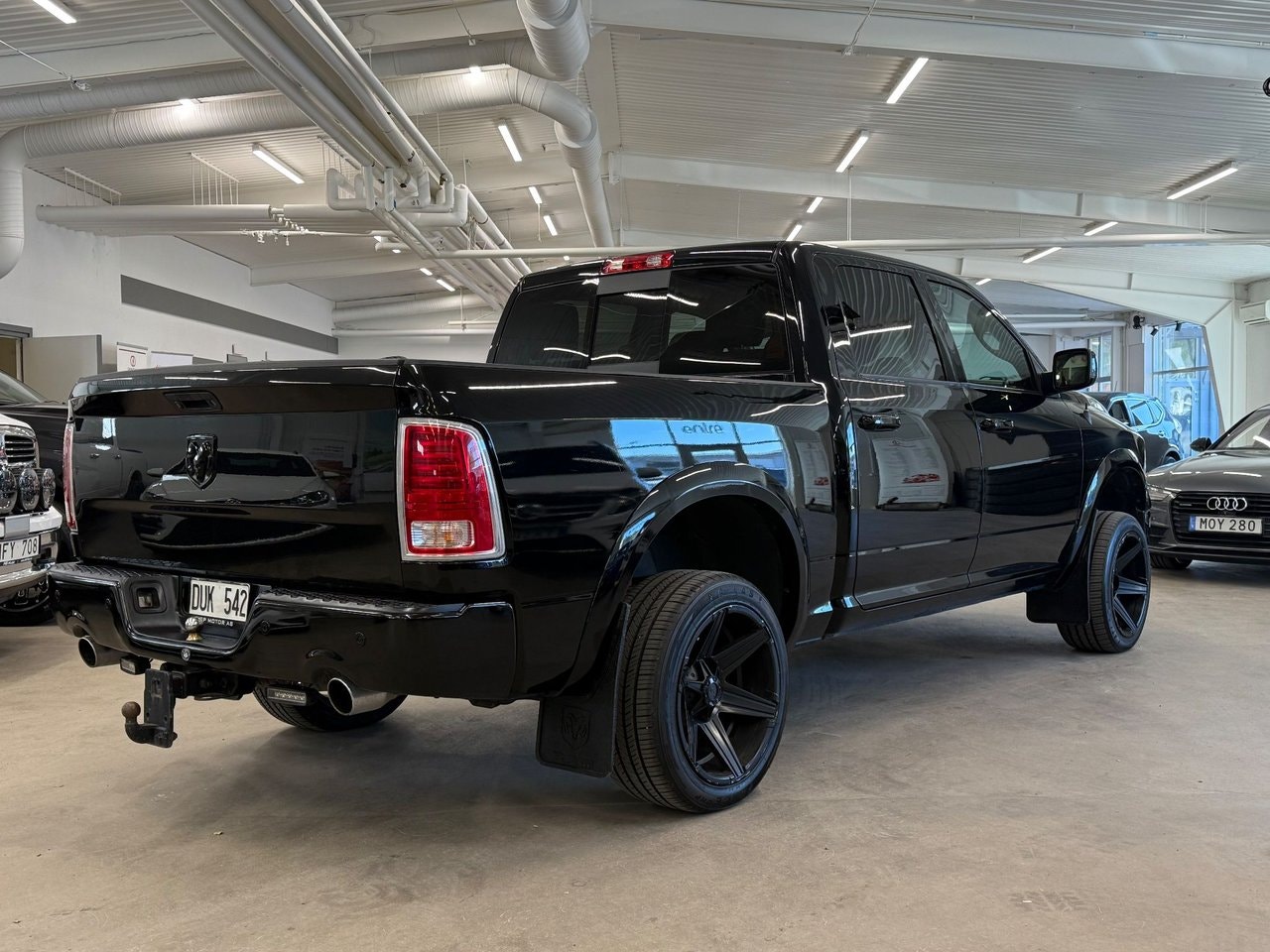 Nu har vi fått in denna riktigt balla Dodge Ram 1500! Bilen kommer i ett Black on Black utförande med en svart färg utvändigt, svarta detaljer, svarta fälgar och en svart skinnklädsel invändigt. I utrustningsväg så finner vi bland annat Laramie paketet, Tuff fälgar, Sportavgassystem, Alpine Ljudsystem, Taklucka och mycket mer. Tidigare ägare har tagit väl hand om bilen och den är besiktigad t.o.m. 2026-02-28. Varmt välkomna in till oss för att förvärva denna fina Dodge Ram 1500! Vi tar mer än gärna emot er befintliga bil i inbyte! OBS! Vi visar bilar efter tidsbokning och detta för att göra din visning så personlig som möjligt. Administrationsavgift tillkommer på samtliga bilar.För mer information, ring 08-388 527 eller mejla info @ autofy.se