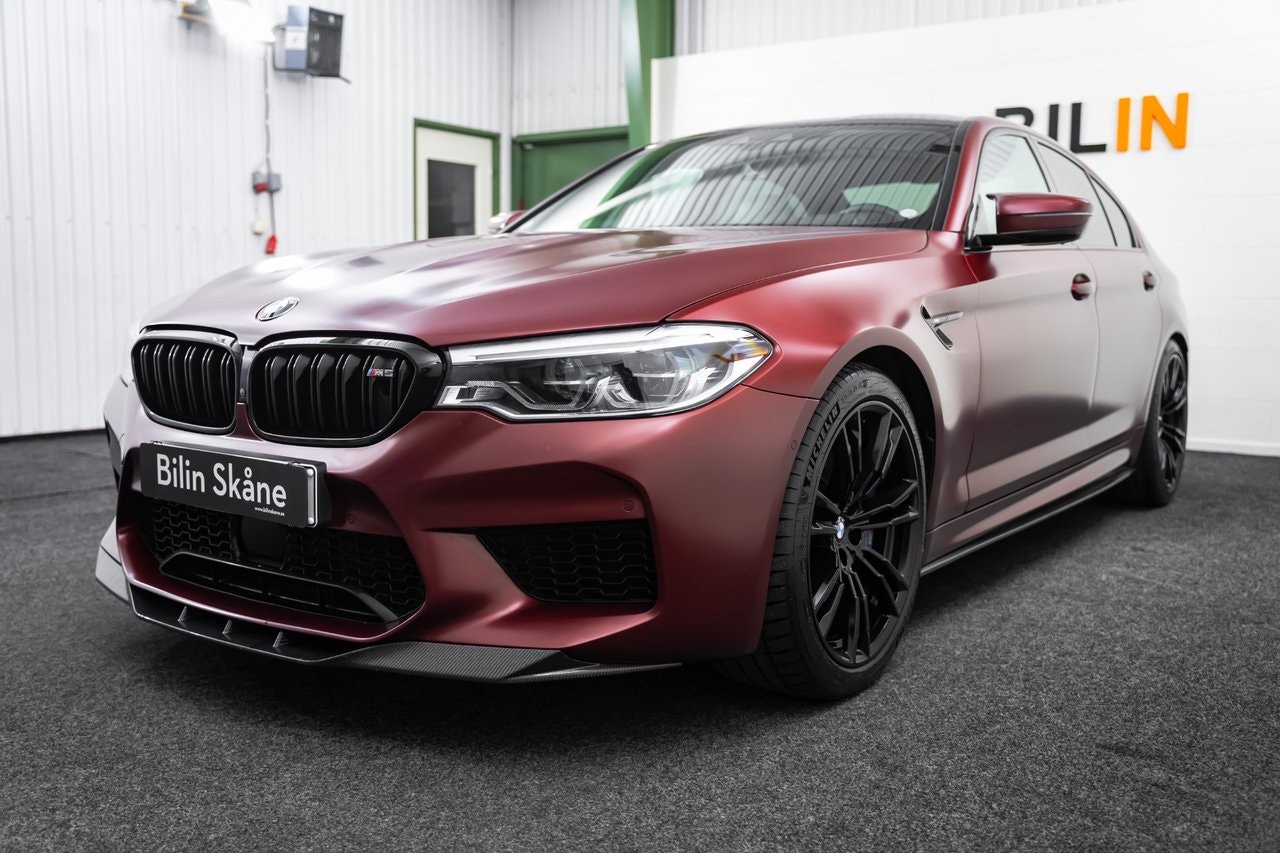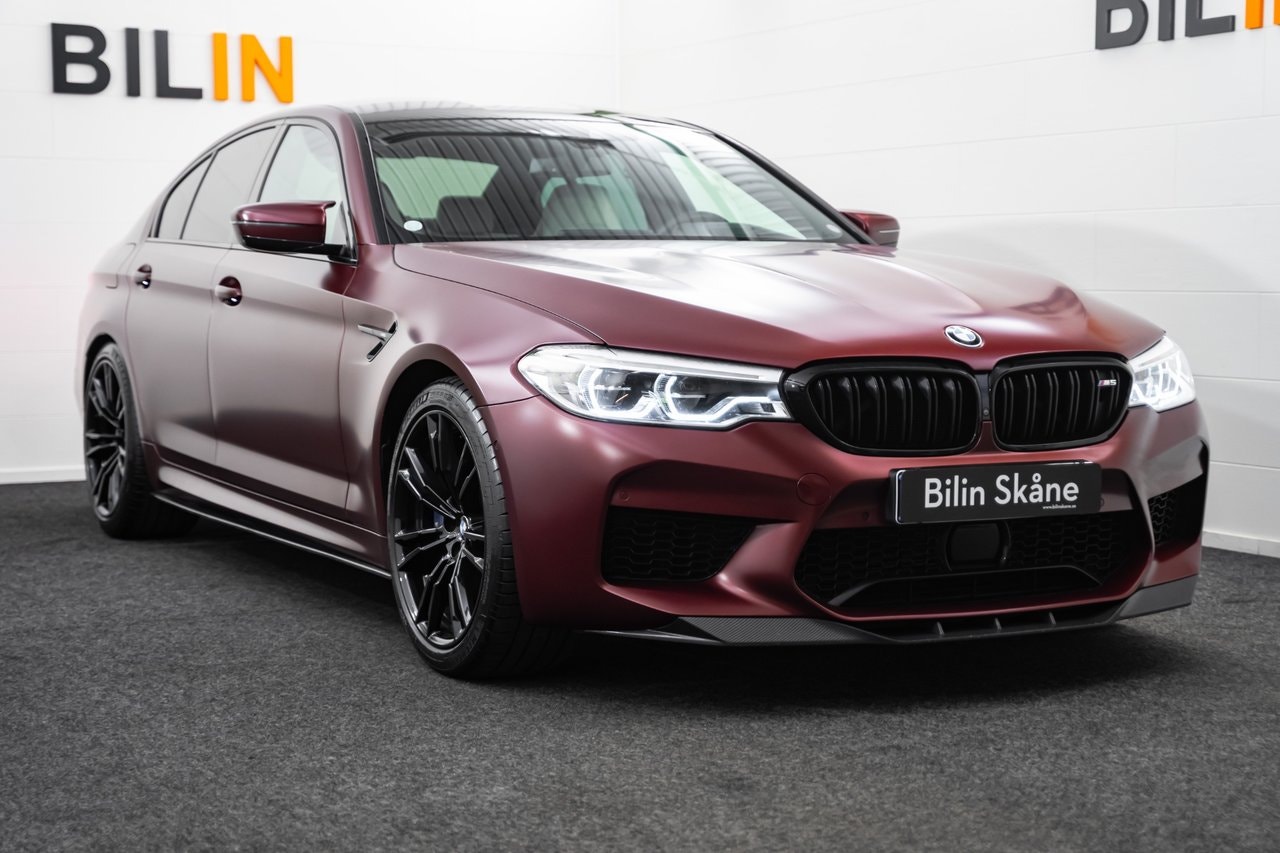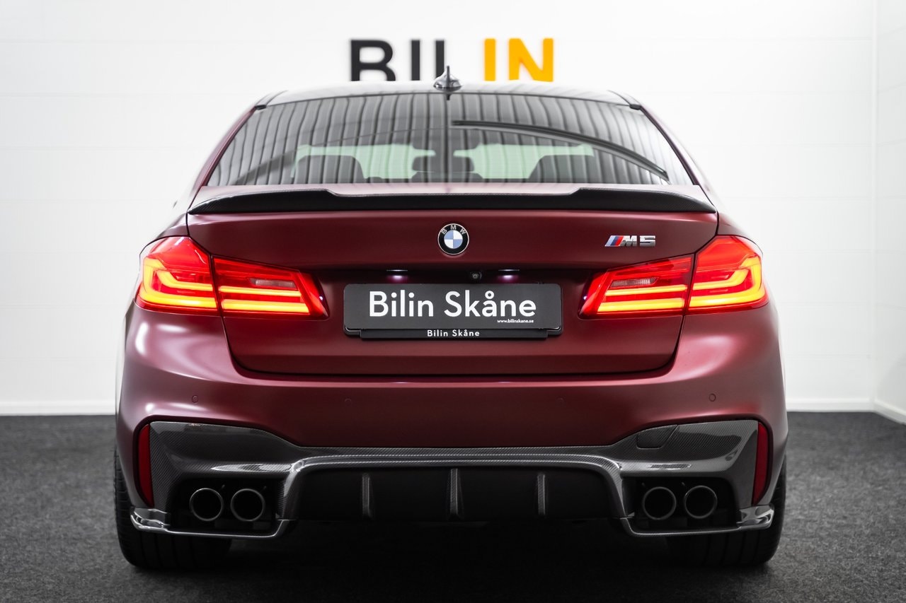 REG NR: RPC903* OBS: KOLLA ER SKRÄPPOST VID MEJLKONVERSATION *Länk till Video visning: https://www.youtube.com/watch?v=9ZvtHf95CBwEn superfin Svensksåld BMW M5 First Edition – 1/400 med BMW Individual Frozen Dark Red Metallic, BMW Individual Merino Smoke White-läder, utökat läderpaket, M xDrive (med RWD-läge), M sport avgassystem, Kolfibertak, Äkta kolfiber runt om, Komfortstolar med minne, Ambient belysning i flera färger, 20" M-fälgar, Adaptiv M-sportfjädring. M Performance-detaljer, Head-Up Display, Keyless, Navigation Professional, Adaptiv LED-strålkastare, Backkamera 360 & PDC fram/bak, Driving Assistant med adaptiv farthållare och lane assist, Dragkrok mmEndast 2 brukare. Komplett service historik. Servad senast vid 68770. Besiktigad till 2027-05-31. Nästan nya Michelin pilot sport 4s. Finans från 4329 kr I månaden via DNB Finans. 0kr kontant möjlig. OBS: För att ge dig bästa möjliga service och presentation av fordonet ber vi dig att kontakta oss via telefon eller e-post innan visning.- Vi tar din bil i inbyte – oavsett märke, modell eller ålder.- Vi erbjuder flexibla finansieringslösningar genom våra samarbetspartners.- Internationell försäljning – We do export./ Bilin Skåne