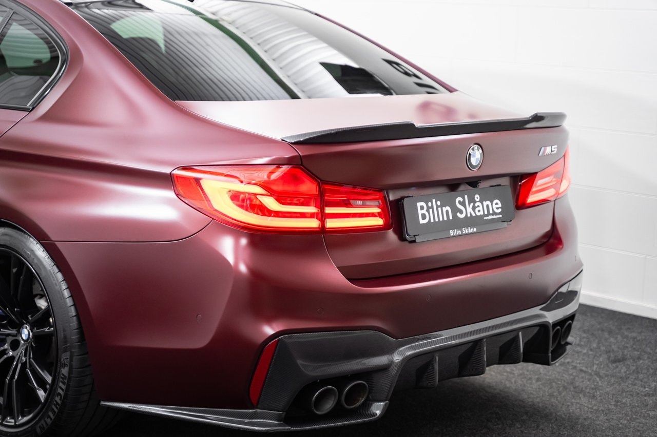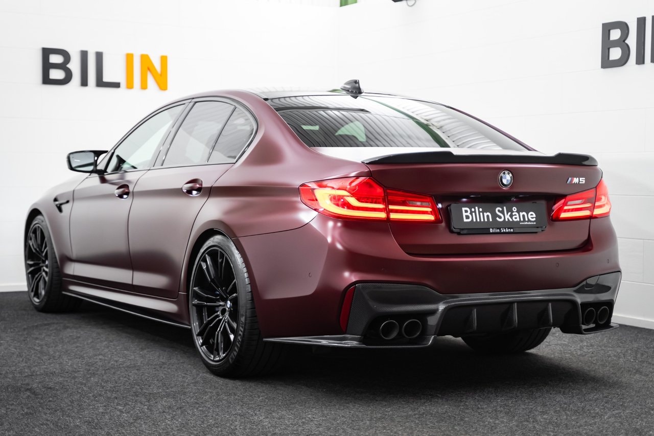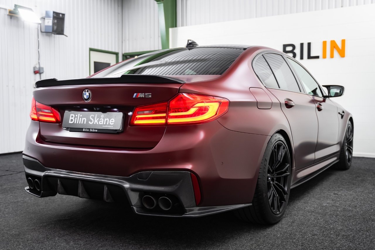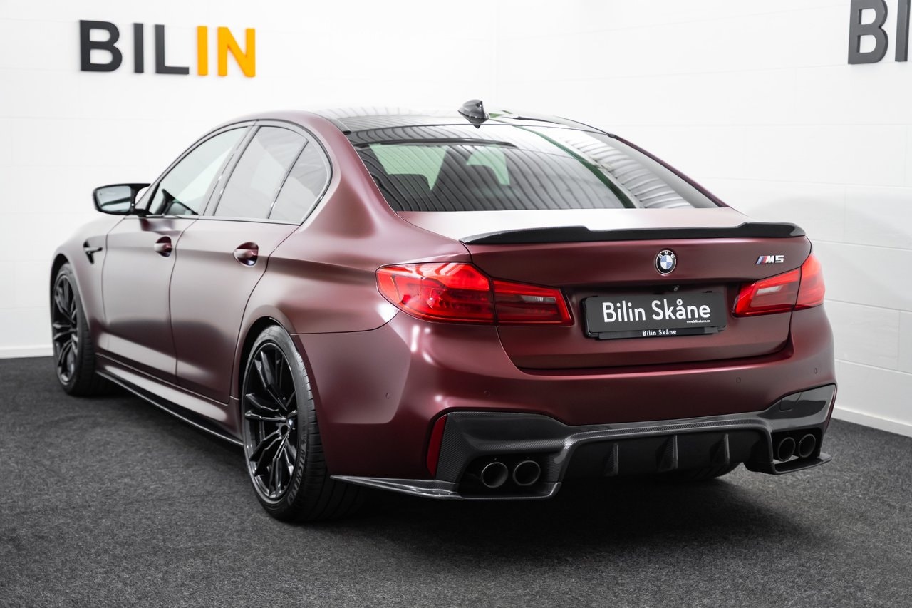 REG NR: RPC903* OBS: KOLLA ER SKRÄPPOST VID MEJLKONVERSATION *Länk till Video visning: https://www.youtube.com/watch?v=9ZvtHf95CBwEn superfin Svensksåld BMW M5 First Edition – 1/400 med BMW Individual Frozen Dark Red Metallic, BMW Individual Merino Smoke White-läder, utökat läderpaket, M xDrive (med RWD-läge), M sport avgassystem, Kolfibertak, Äkta kolfiber runt om, Komfortstolar med minne, Ambient belysning i flera färger, 20" M-fälgar, Adaptiv M-sportfjädring. M Performance-detaljer, Head-Up Display, Keyless, Navigation Professional, Adaptiv LED-strålkastare, Backkamera 360 & PDC fram/bak, Driving Assistant med adaptiv farthållare och lane assist, Dragkrok mmEndast 2 brukare. Komplett service historik. Servad senast vid 68770. Besiktigad till 2027-05-31. Nästan nya Michelin pilot sport 4s. Finans från 4329 kr I månaden via DNB Finans. 0kr kontant möjlig. OBS: För att ge dig bästa möjliga service och presentation av fordonet ber vi dig att kontakta oss via telefon eller e-post innan visning.- Vi tar din bil i inbyte – oavsett märke, modell eller ålder.- Vi erbjuder flexibla finansieringslösningar genom våra samarbetspartners.- Internationell försäljning – We do export./ Bilin Skåne