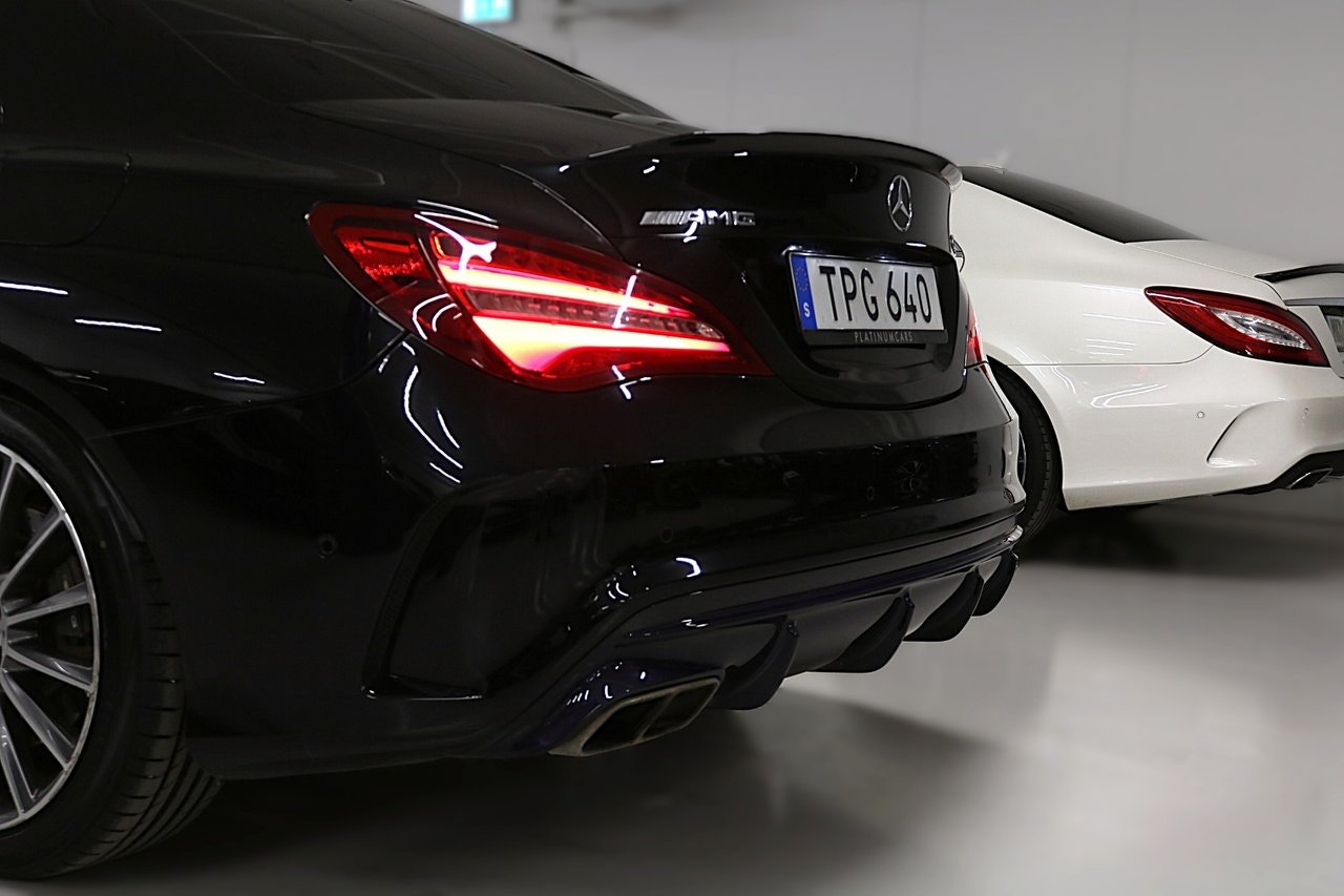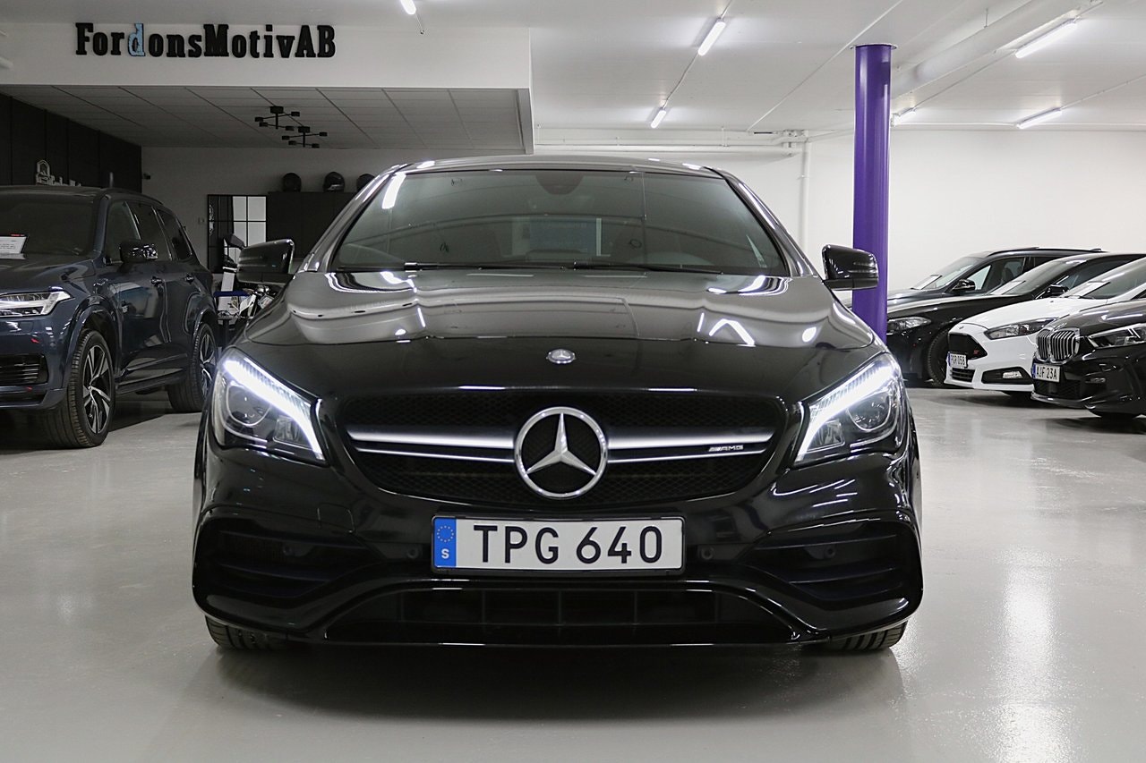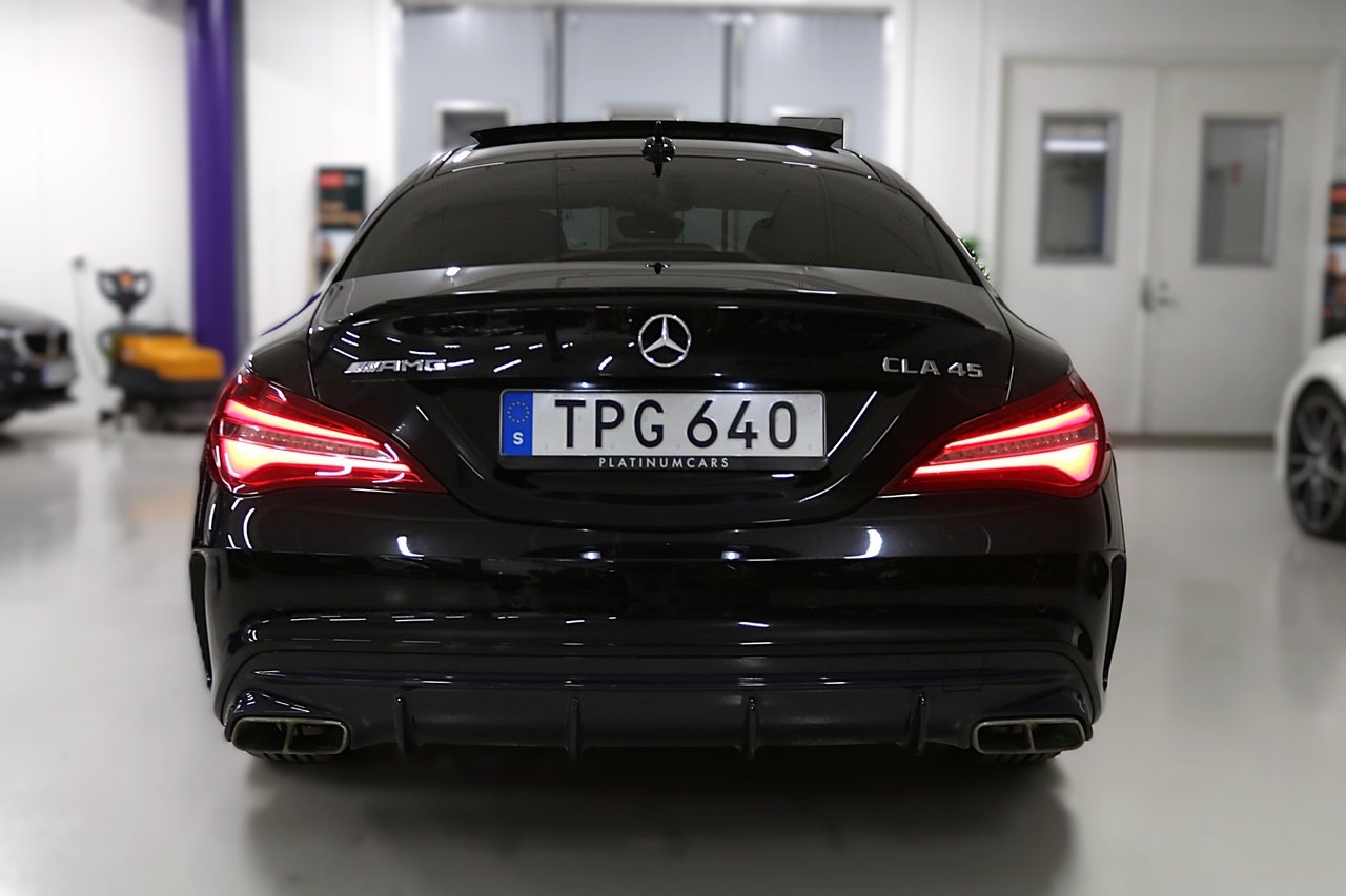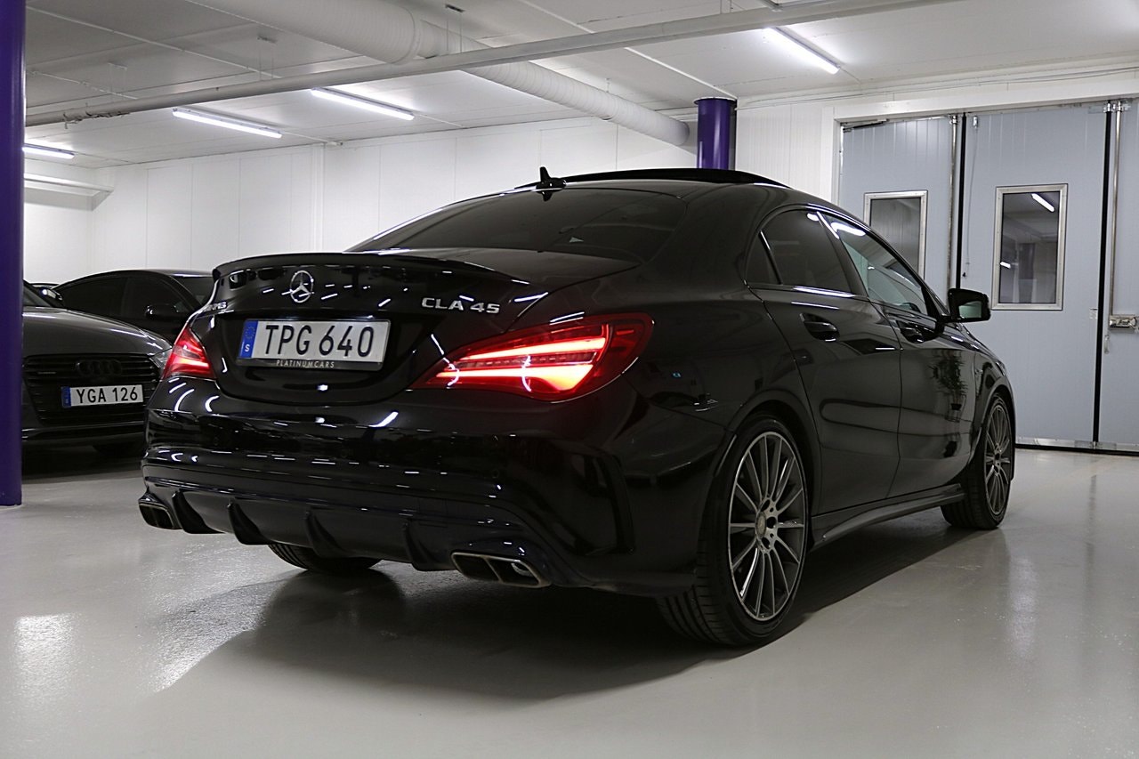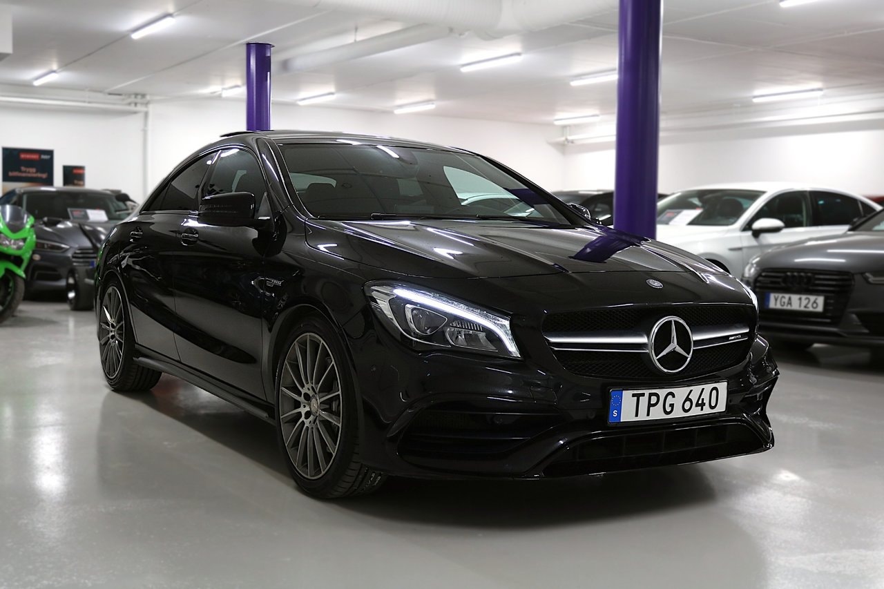 # VI TAR ALLA INBYTEN # Nyinkommen välhållen Mercedes CLA 45 Facelift 381HK 4-matic Coupe med endast 4 Privata brukare, Intagen av PlatinumCars ab 2018.Info/Utrustning:-Panorama Öppningsbart-Parkeringssensorer fram & bak-Elektrisk infällbara sidospeglar-Bluetooth med-Kollisionsvarning med bromsfunktion-Agility Select-LED High Performance-Telefonfunktion/musikstreaming,-Bakkamera -Sportchassi-Diamantoptik-Attention Assist-LED strålkastare-Agility Select-Pedestrian-Protection-AMG mattor-Seat Comfort Paket-Illumination package -F1-Paddlar-Navigation Garmin-Röda kontrastsömmar-Tonade rutor-Designo säkerhetsbälte-Ljus och siktpaket-Värmedämpande rutor- Besiktad till 2027-01-31-Årsskatt: 1482kr- 2 nycklar.Välkommen att boka din visning – ring gärna innan besök!Övrigt:- Visning även kvällar & helger – enligt överenskommelse- Vi tar gärna din bil i inbyte- Förmånlig finansiering kan ordnas- Hemleverans erbjuds i hela landetVälkommen att boka din visning – ring gärna innan besök!
